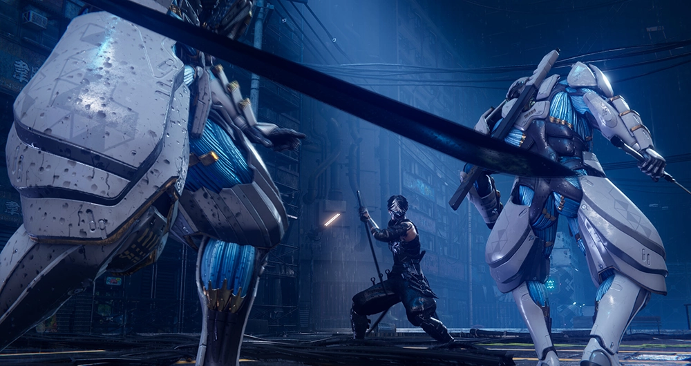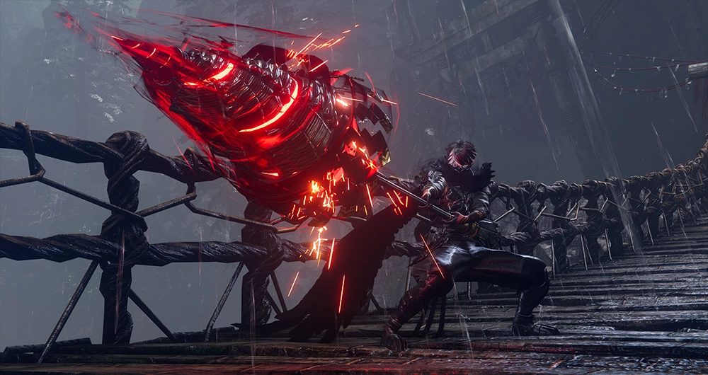El diseño de enemigos refuerza esta dinámica de combate que resulta familiar. No esperan turno. Atacan desde fuera de pantalla, encadenan agarres, bloquean ataques básicos y se agrupan para intentar saturar. La inteligencia artificial castiga la repetición y obliga a variar nuestras técnicas, a improvisar, a dominar cada arma. Aquí brilla la experiencia conjunta de los dos estudios involucrados en el desarrollo. La fluidez de Team Ninja se mezcla con la espectacularidad de Platinum. El resultado es un baile lleno de sangre que exige precisión y estar siempre pendientes del entorno.