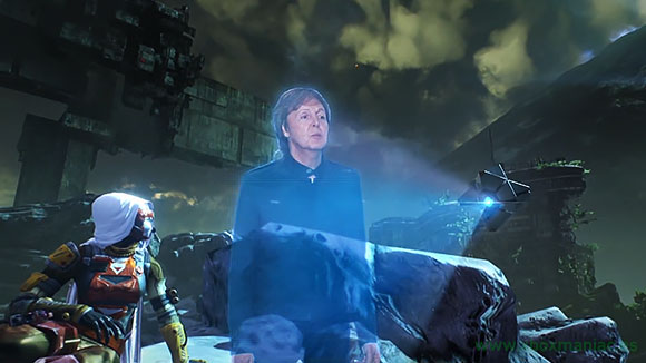 El holograma de Paul McCartney parece más cutre en imagen estática de lo que es realmente. Su contribución a la banda sonora que diseño el ex-Bungie Michael Salvatori ha sido bastante publicitada. Podemos oír la aportación si nos acabamos el modo historia o accedemos a los títulos de crédito de cualquier forma. También está a la venta y por muchos rincones de Internet. Así que no hay excusa para pasar por alto la canción.